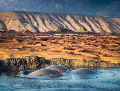 Continue to the region’s surreal mud volcanoes (accessible by 4x4).